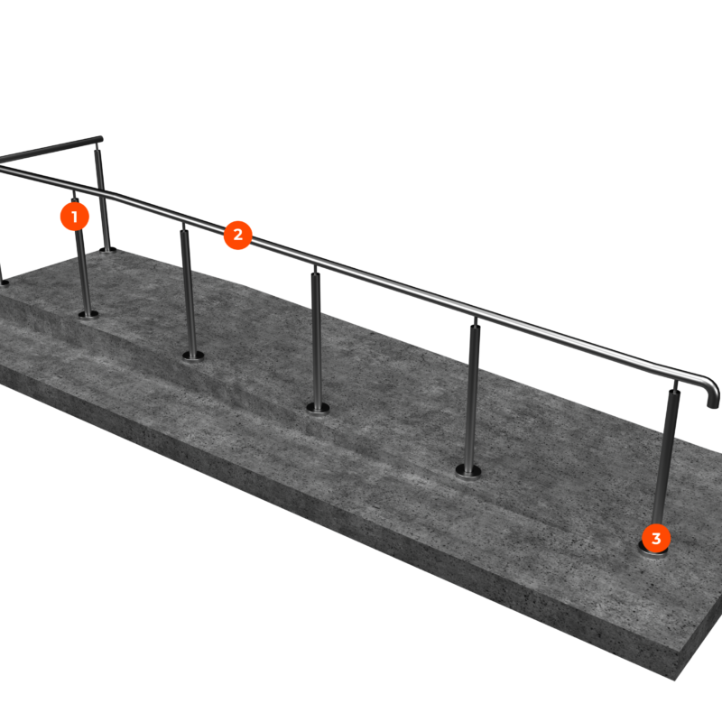 For applications where a freestanding handrail is required to steps and ramps, the Orbis system with no infill provides a simple solution with a range of fixing options to suit your requirements.