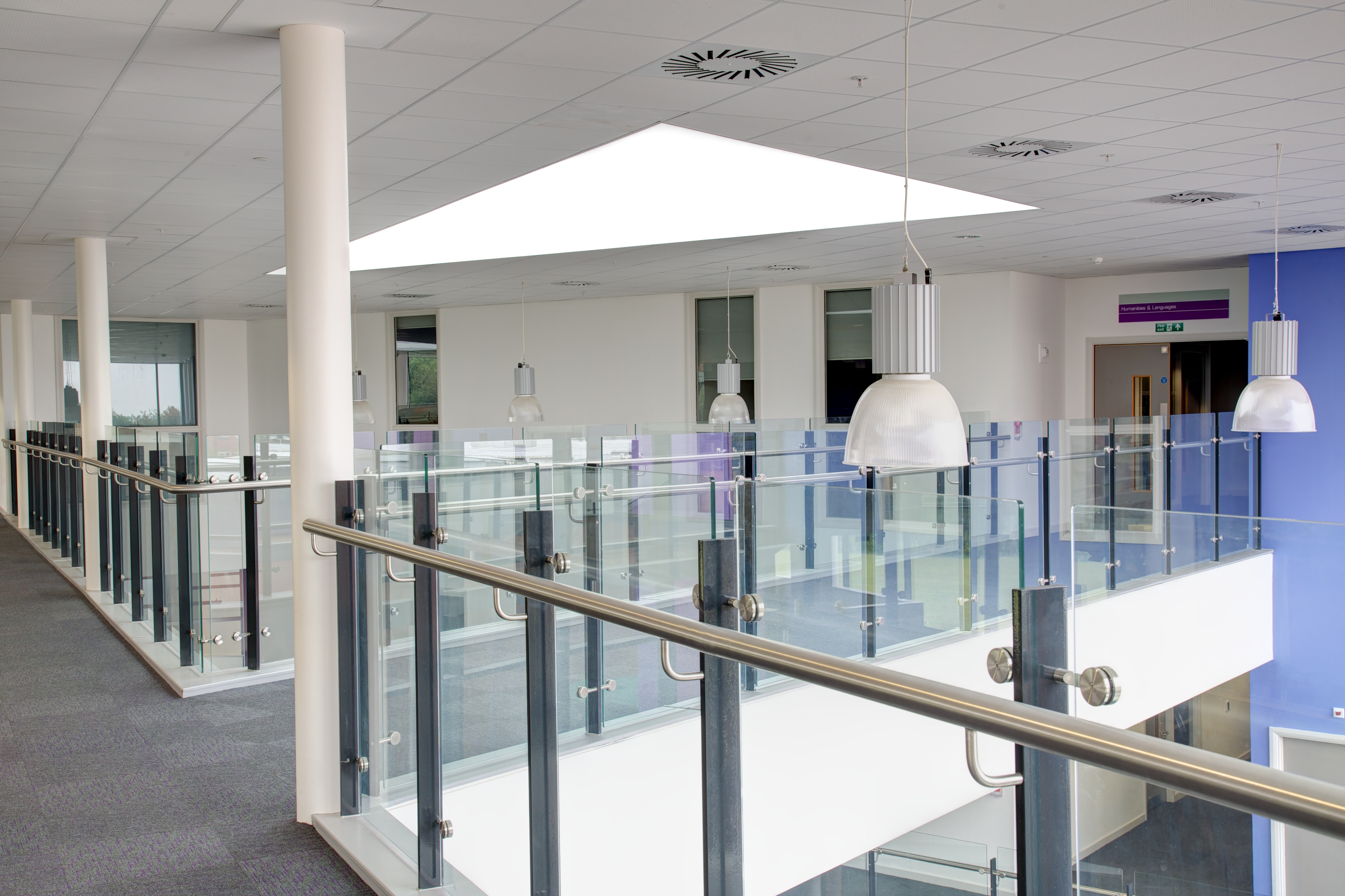 The same system was used to create the handrails for the school’s six staircases, maximising natural light and enhancing transparency as students and staff move around the building. Delta Balustrades worked collaboratively with the design team to ensure that the balustrades and handrails not only meet the aesthetic requirements for the scheme but that the fixing detail for the atriums fully comply with loading requirements.